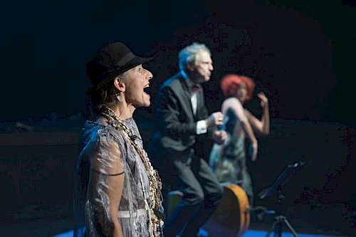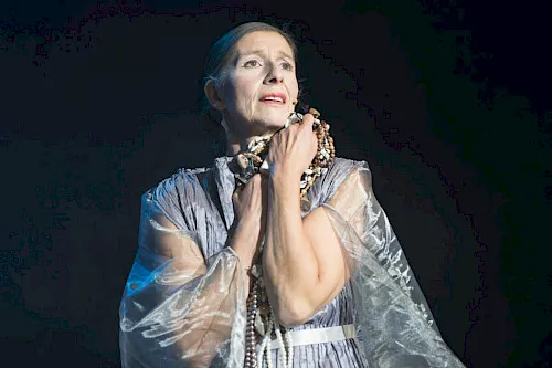 Die von den Darsteller:innen erzeugten Spannungsfelder sind schlichtweg atemberaubend: Katharina Brenner als Undine, Hans Woudenberg als «singender Cellist», Frauke Aulbert als mythisches Wesen und die als Interludium auf einer fahrbaren Trage hereinrauschende Sachika Ito als Violetta (aus Giuseppe Verdis La traviata).